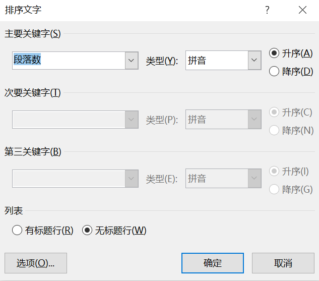 还有一种情况就是没有标题的时候,选中这些,点击排序,如下图: