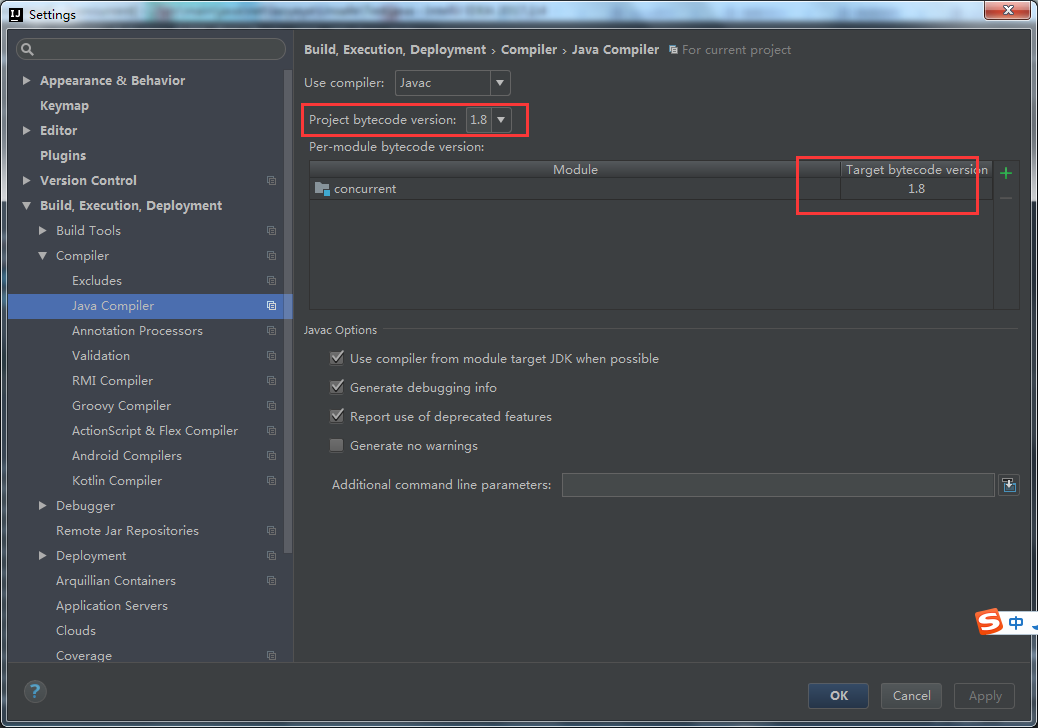 2. 打开 File --> Settings --> Compiler --> Java Compiler设置Project bytecode version;同时修改项目对应的Target bytecode version。 如图所示: