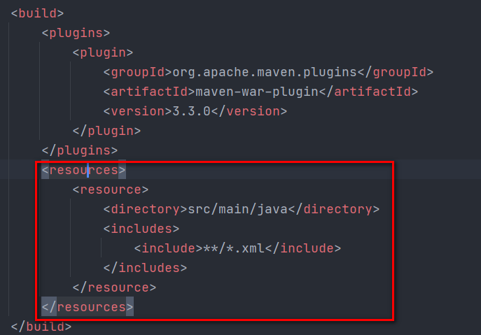 <resources> <resource> <directory>src/main/java</directory> <includes> <include>**/*.xml</include> </includes> </resource> </resources>