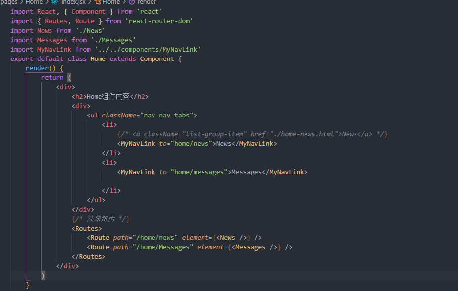 <MyNavLink to="home/news">News</MyNavLink> 不能在home前面加/