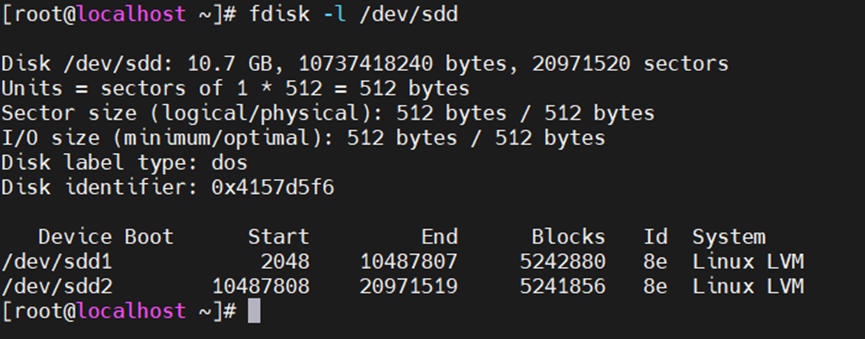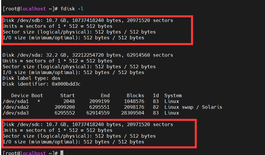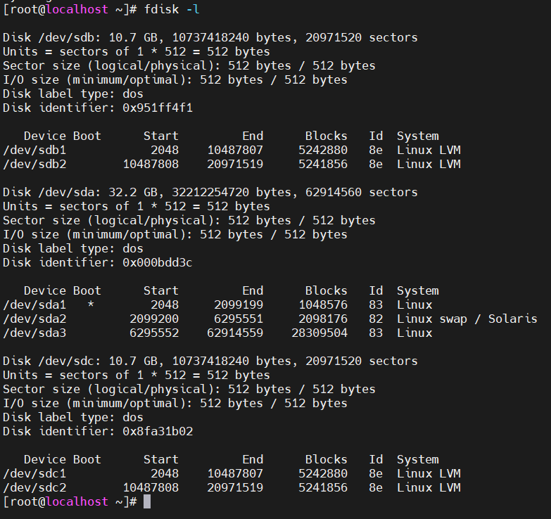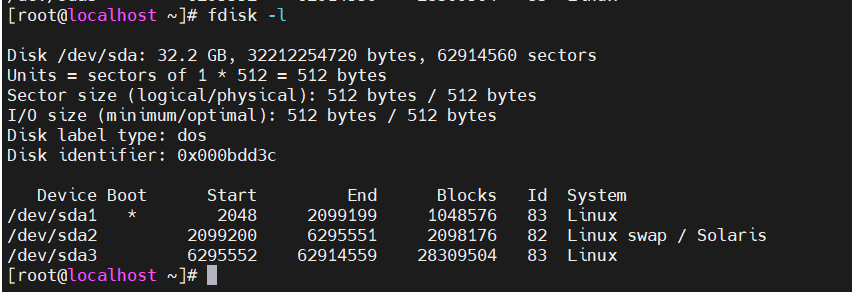 4、用fdisk –l 命令查看分区表