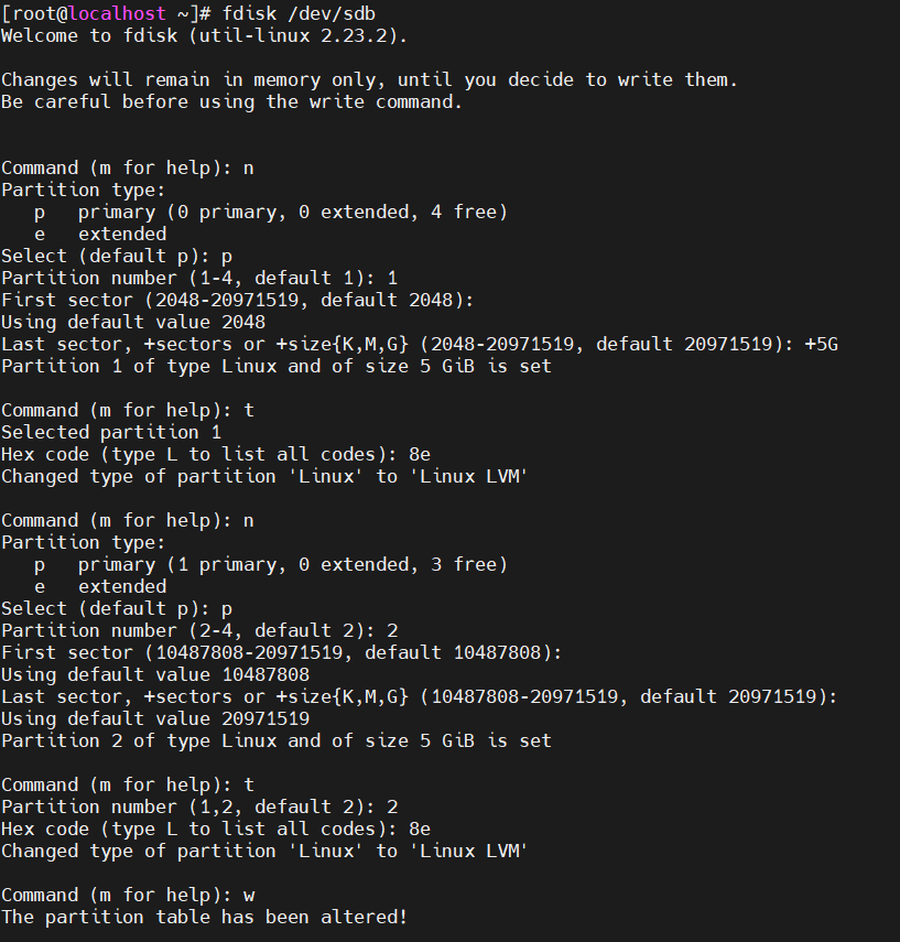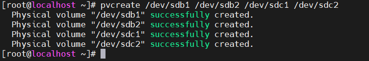 2)pvcreate /dev/sdb1 /dev/sdb2 /dev/sdc1 /dev/sdc2