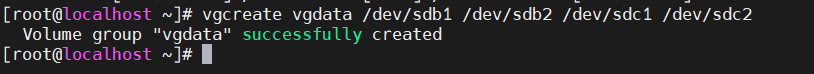 vgcreate vgdata /dev/sdb1 /dev/sdb2 /dev/sdc1 /dev/sdc2