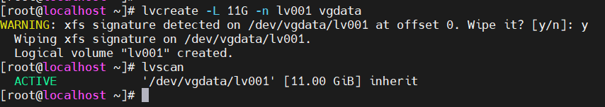 lvcreate -L 11G -n lv001 vgdata