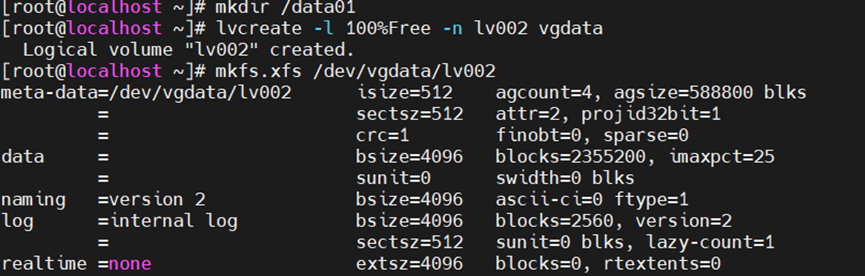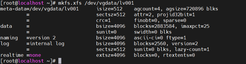 mkfs.xfs /dev/vgdata/lv001