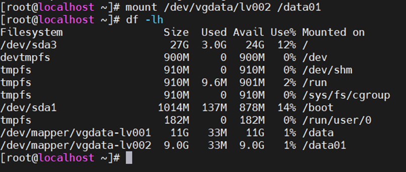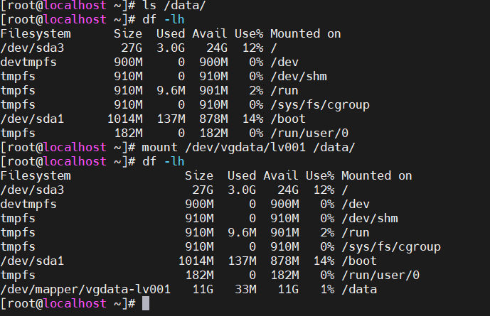 9、创建/data,把/dev/vgdata/lv001挂载上去