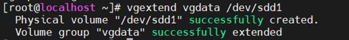 - vgextend vgdata /dev/sdd1