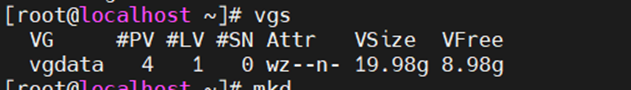 8、使用mkfs /dev/vgdata/lv01命令格式化lv01