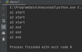 p2,p3为守护进程,但p1不是所以执行1秒之后,就退出主程序了,也就没有打印p2p3的内容。但是其依旧在执行中,直到执行完成。