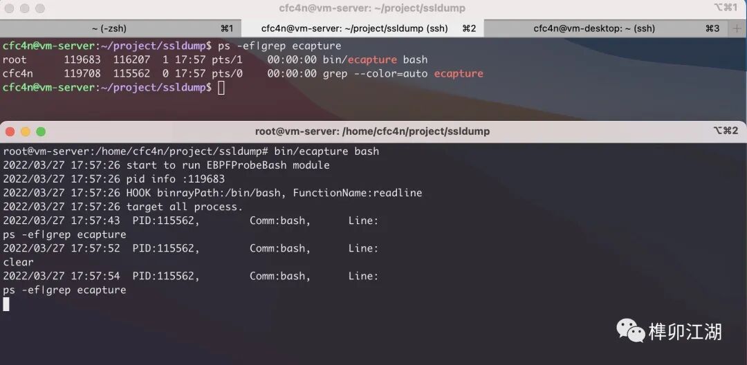 也可以捕获bash的命令,适用于安全审计场景。包括mysqld的数据库审计等。