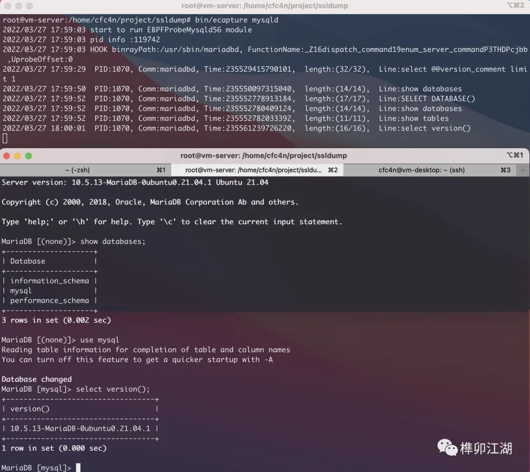 - 数据库审计场景,可以捕获mysqld/mariadDB的SQL查询。