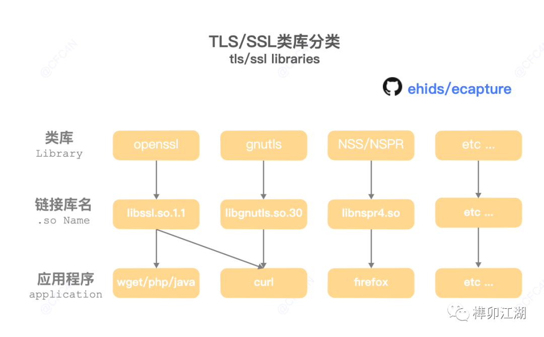 ecapture tls命令用于启动tls/ssl模块,支持了三类tls/ssl加密类库,分别是