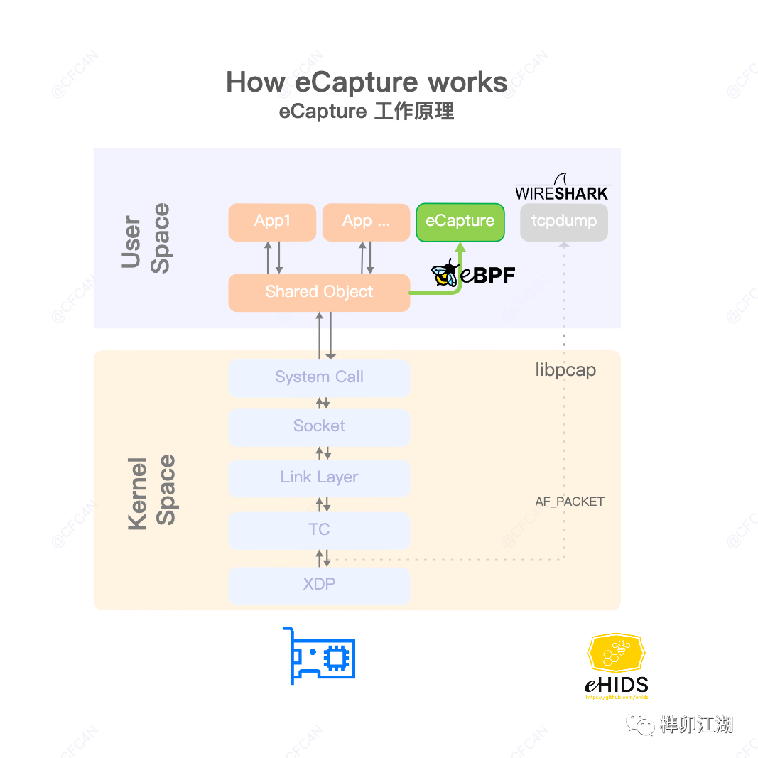eCapture是一款基于eBPF技术实现的用户态数据捕获工具。不需要CA证书,即可捕获https/tls的通讯明文。