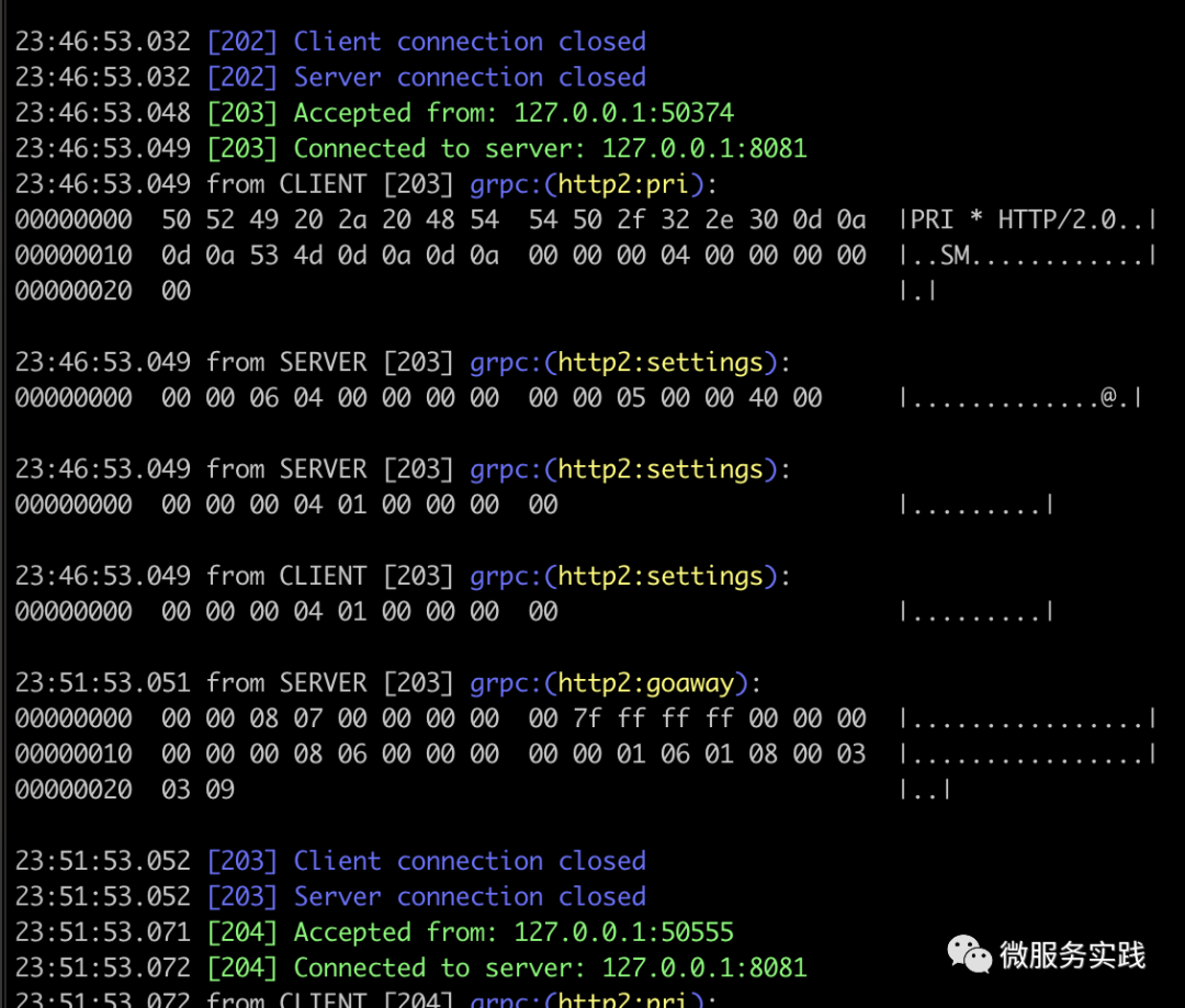 再比如 gRPC 有个 MaxConnectionIdle 参数,用来设置 idle 多久该连接会被关闭,我们可以直接观察到时间到了之后服务端会发送一个 http2 的 GoAway 包。