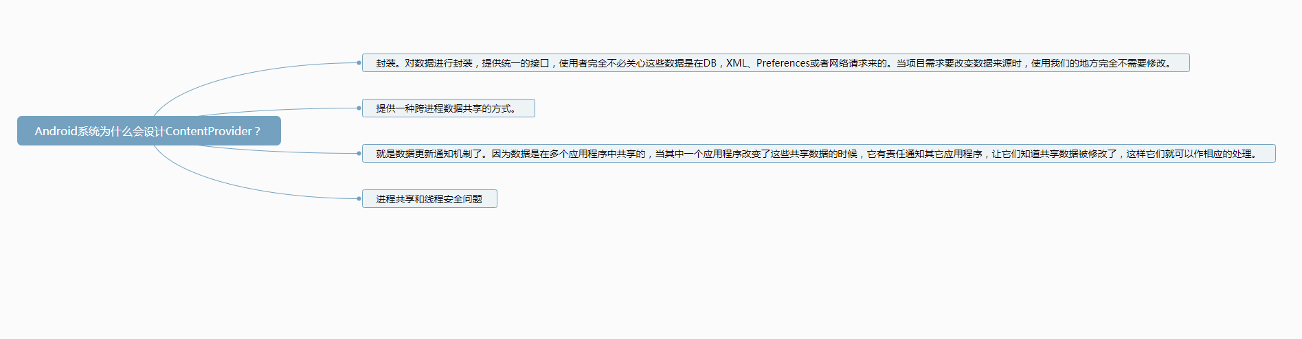 由系统来管理ContentProvider的创建、生命周期及访问的线程分配,简化我们在应用间共享数据(进程间通信)的方式。我们只管通过ContentResolver访问ContentProvider所提示的数据接口,而不需要担心它所在进程是启动还是未启动 。