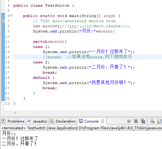 “标签”是指后面跟一个冒号的标识符。对java来说唯一用到标签的地方是在循环语句之前,设置在循环语句之前的理由是:我们希望在其中嵌套另一个循环,由于break和continue关键字只能中断其当前循环,但若随标签使用,他们就会中断到存在标签的地方。