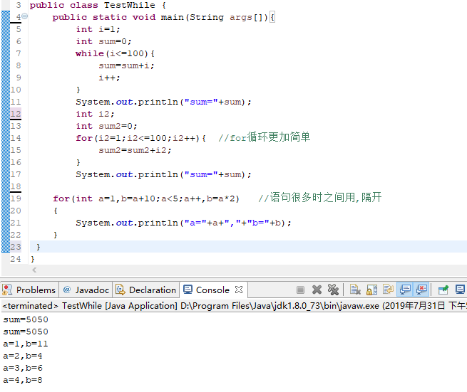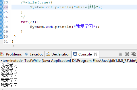 •小练习:无限循环:编译器将while(true)和for(;;)看做一回事,都指的是无限循环