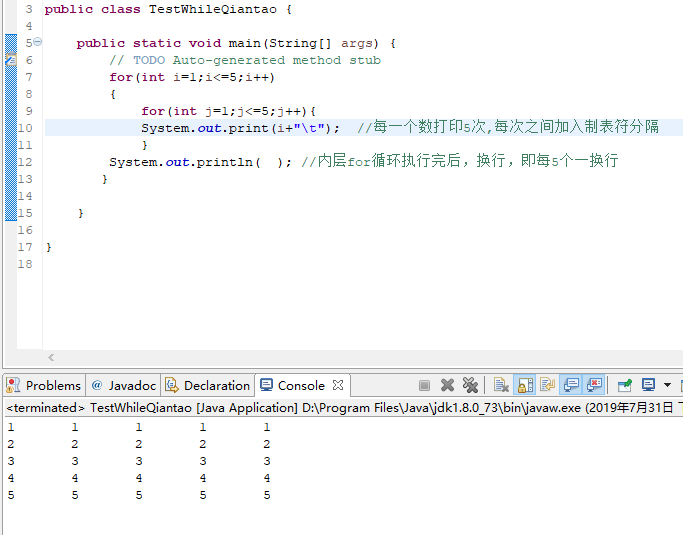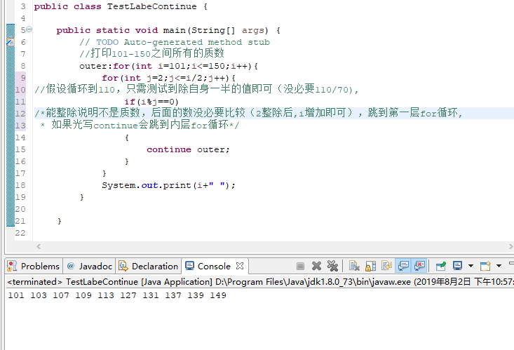 5.带标签的break和continue:需要用到goto关键字,goto关键字很早在c语言中出现,尽管goto仍然是java的一个保留字,但并未在java中得到正式的使用。