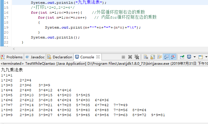 2.嵌套循环:在一个循环语句再嵌套一个或多个循环,称为嵌套循环