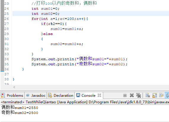 •小练习:打印100以内的奇数和,偶数和。通过if语句某数是否能整除2判断奇数,偶数。