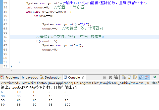 • 小练习:输出1-1000以内能被5整除的数,且每行输出5个