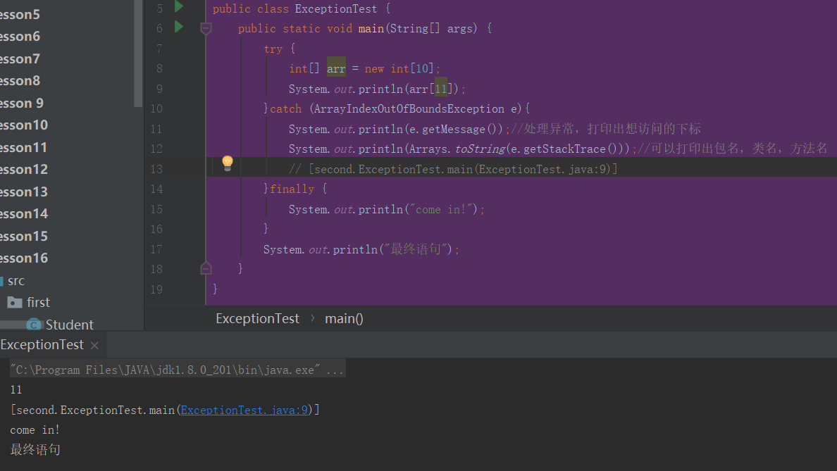 getStackTrace()方法可以打印出包名.类名.方法名:[second.ExceptionTest.main(ExceptionTest.java:9)]
