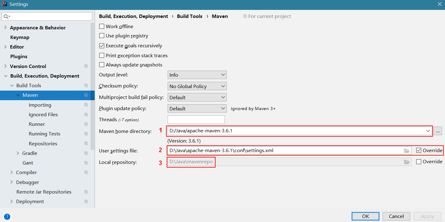 2:勾选Override,改为解压路径下的conf\settings.xml