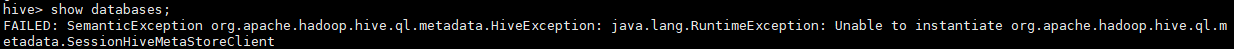 出现原因:hive没有初始化,需要手动指定hive将要使用的数据库,由于本次使用的是hive内嵌式数据库“derby”,所以执行如下命令