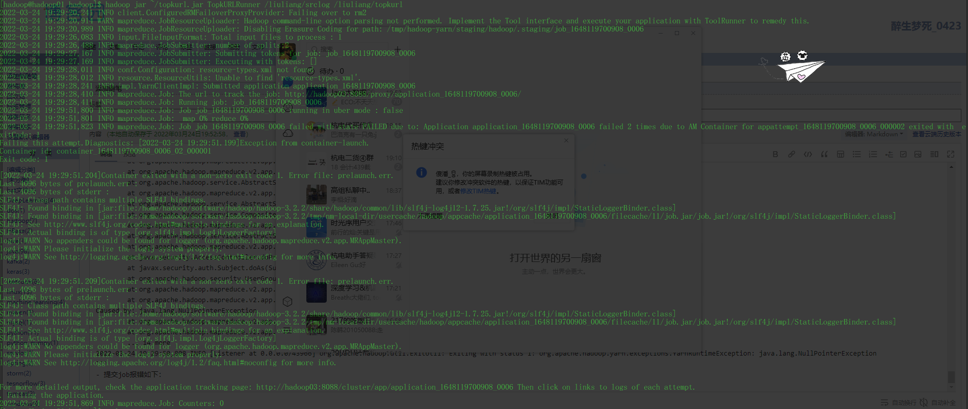 无论是将本地运行正常的程序或是示例程序PI,在集群上跑,都无法执行,还未开始执行就退出了。