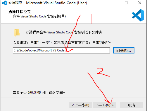 接下来选择你要将VS code安装到哪里,我个人喜欢创建一个object文件夹,然后将程序安装在object下。