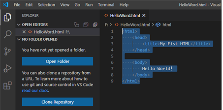 <html> <head> <title>My Fist HTML</title> </head> <body> Hello World! </body> </html>