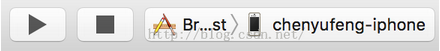 手机截屏也算调试?哈哈。其实也算是开发中的一个小技巧哈。其实大家都会在iPhone上同时按电源键+Home键截屏,然后使用各种通讯软件发给其他人,这个略显不方便。我们来使用Xcode中的方式截屏。当手机接上电脑后,注意要把调试设备选为自己的手机: