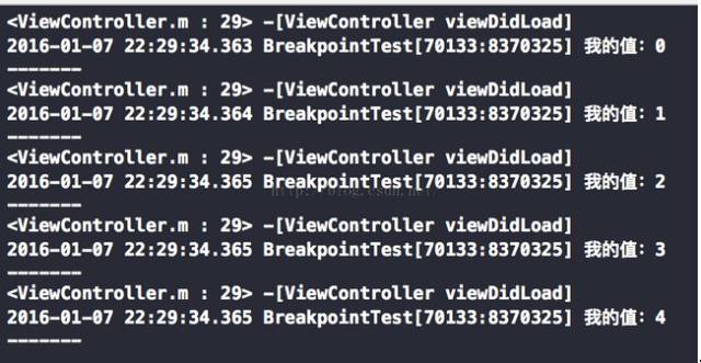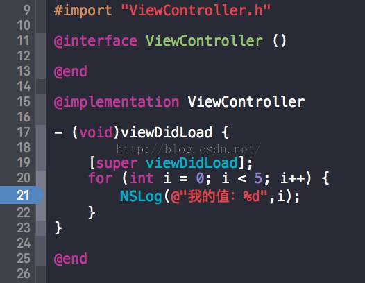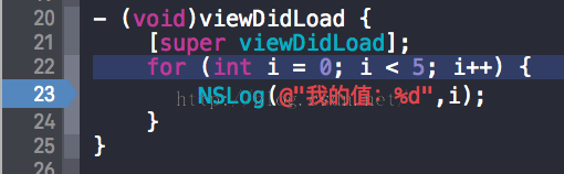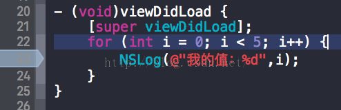 for(int i = 0; i < 5; i++) {NSLog(@"我的值:%d",i);}}@end