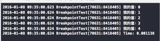 #import "ViewController.h"#define TICK NSDate *startTime = [NSDate date]#define TOCK NSLog(@"Time: %f", -[startTime timeIntervalSinceNow])@interface ViewController ()@end@implementation ViewController- (void)viewDidLoad {[superviewDidLoad];TICK;for(int i = 0; i < 5; i++) {NSLog(@"我的值:%d",i);
