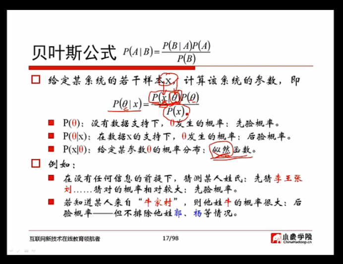 贝叶斯定理:贝叶斯定理也称贝叶斯推理,贝叶斯定理是关于随机事件A和B的条件概率(或边缘概率)的一则定理。其中P(A|B)是在B发生的情况下A发生的可能性。简而言之就是用来描述两个条件概率之间的关系,结果与先验条件有很大关系,比如A事件下发生B事件的概率,与B事件下发生A事件的概率是不一样的。