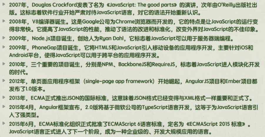 由于设计时间太短,语言的一些细节考虑得不够严谨,导致后来很长一段时间,Javascript写出来的程序混乱不堪。如果Brendan Eich预见到,未来这种语言会成为互联网第一大语言,全世界有几百万学习者,他会不会多花一点时间呢?