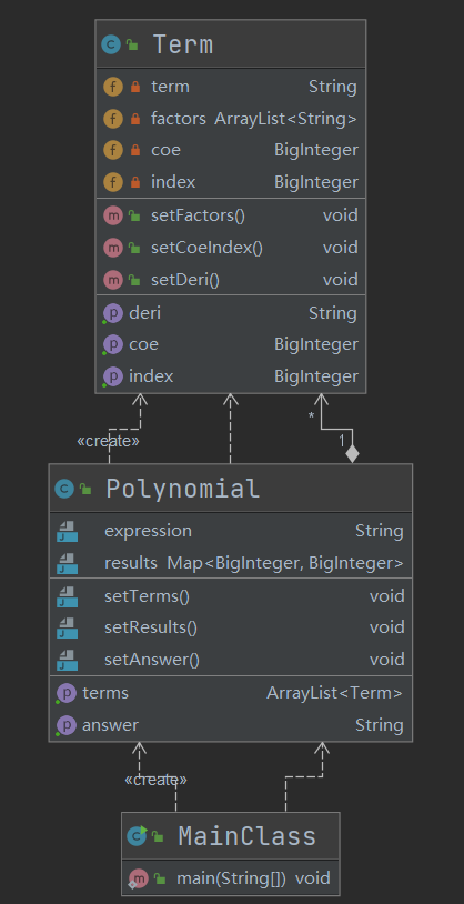 MainClass:生成Polynomial实例,将输入的表达式作为target传递给Polynomial类