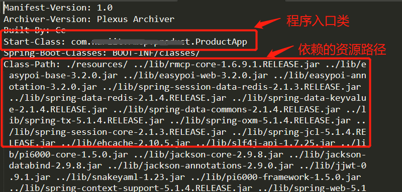 3.在打包后运行jar包,提示报错,可以检查下jar包里的META-INF/MAINIFEST.MF 文件,该文件记录了jar包的入口类和依赖的jar包和资源路径,检查下路径下是否有对应的依赖包