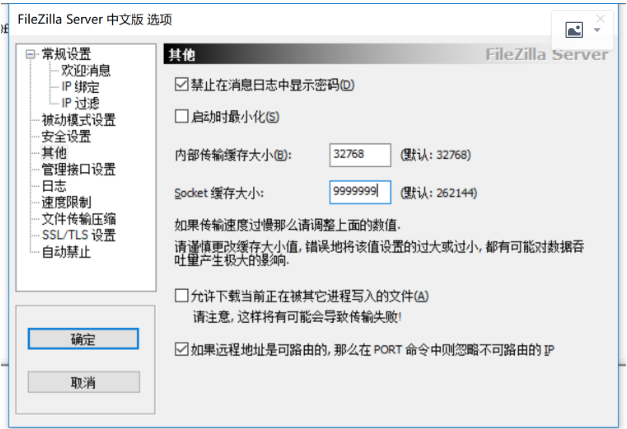 windows环境的ftp服务器可以通过软件修改socket缓存大小,如: