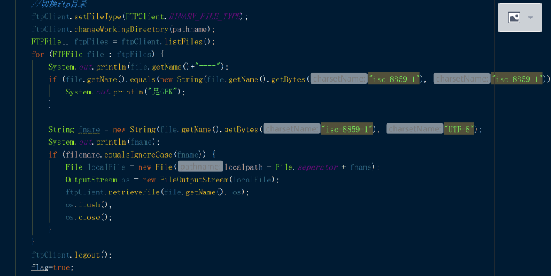 主要是因为编码格式的问题,英文名的文件ftp使用的是GBK格式的编码,含中文的文件FTP使用的是ISO-8859-1的编码格式,所以如果在
