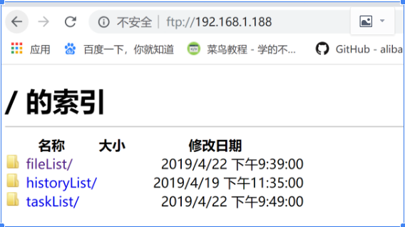本机设置的ftp根路径是 E:\jd\ftpserver\ ,ftp会以 / 作为根路径,在配置文件里设置路径时应使用完整路径,如: