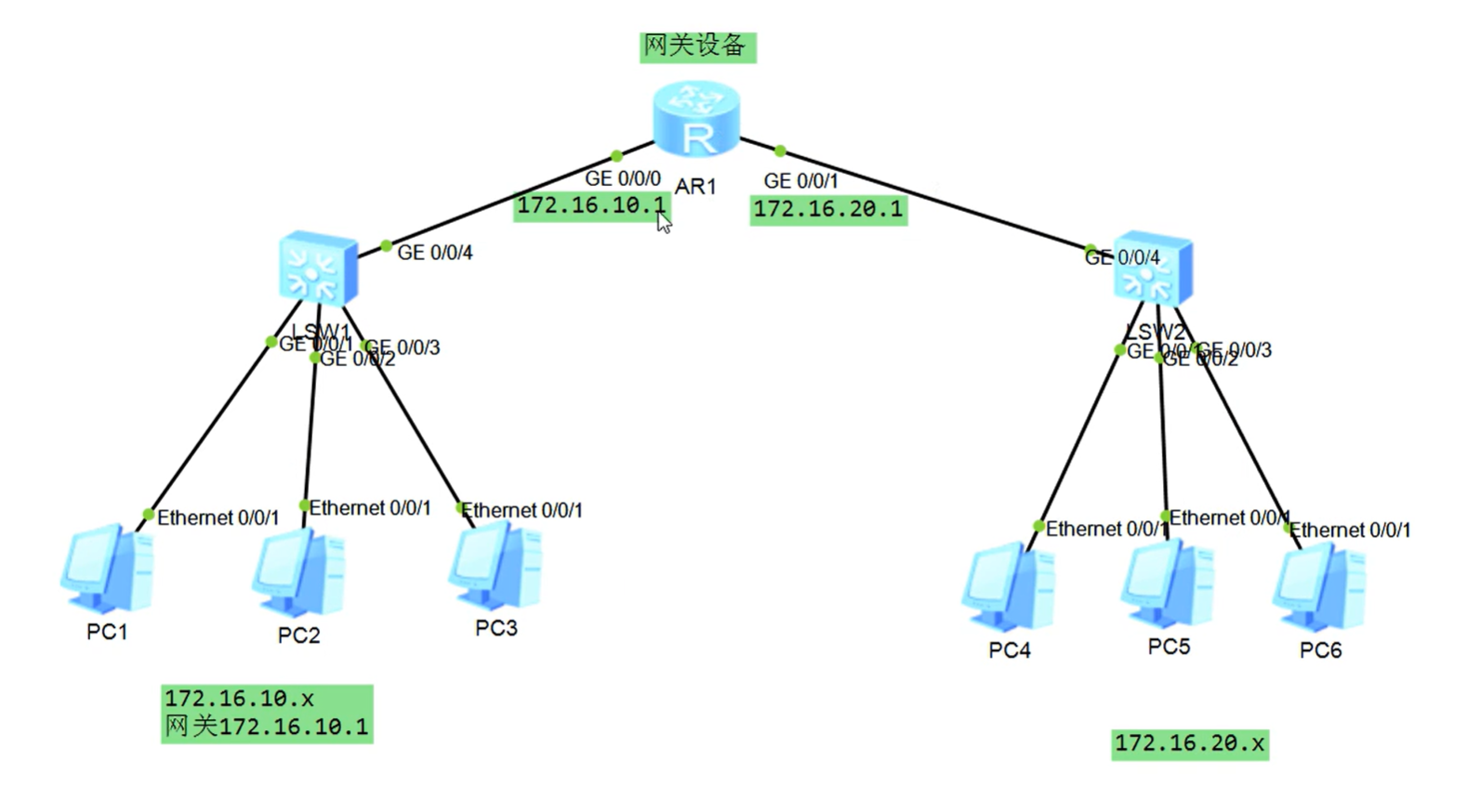 ip add 192.168.20.1 255.255.255.0 配上地址