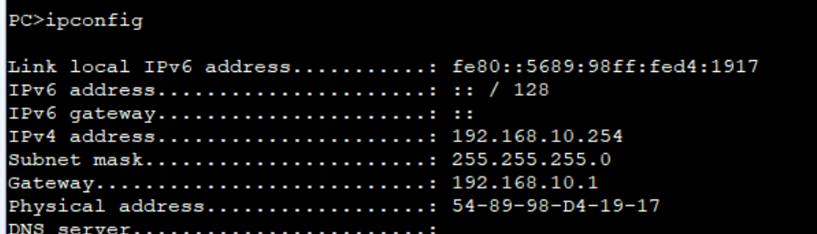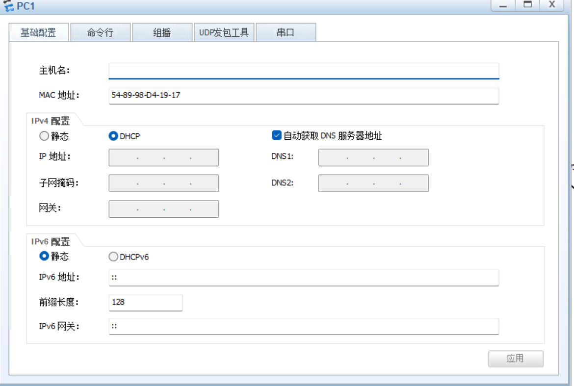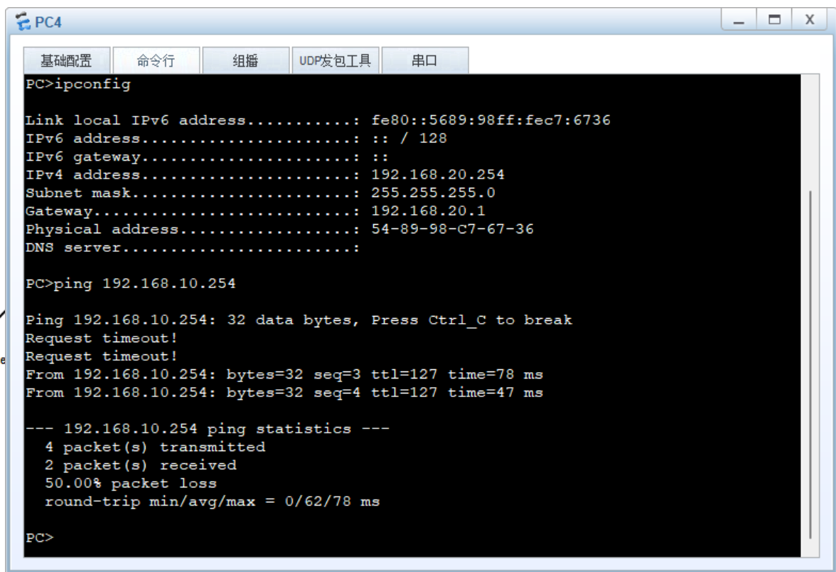 结果:当前实验中的PC1在选中dhcp后,被自动分配地址了。并且由于我创建了两个ip pool ,并且都配上了网关,所以另外一个网段中开启了dhcp,被分配地址的PC可以和PC1相互ping通!