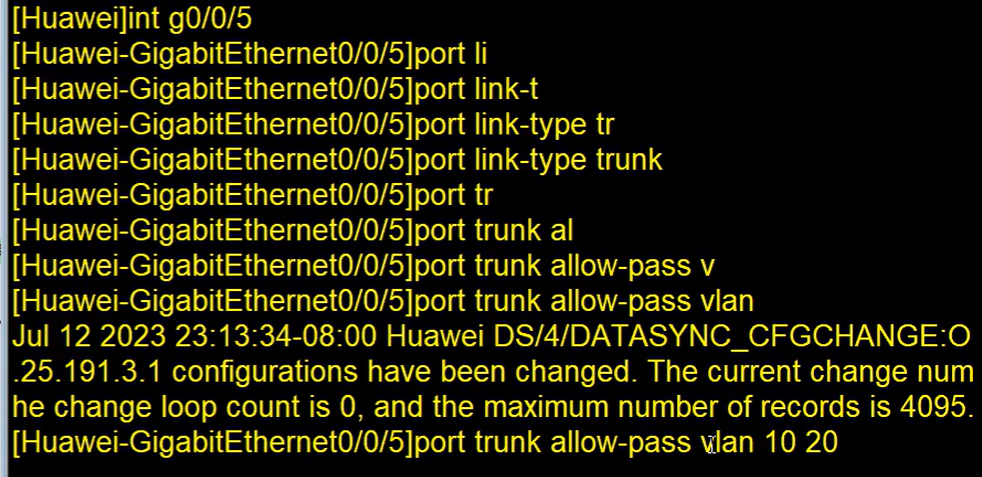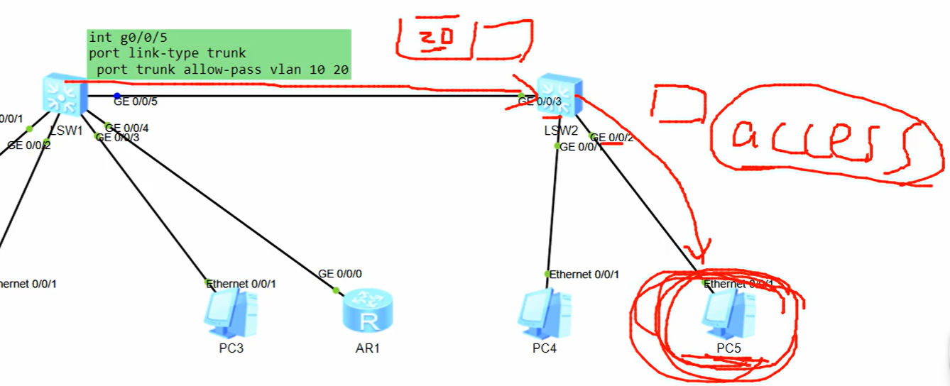 对接口5配置trunk类型