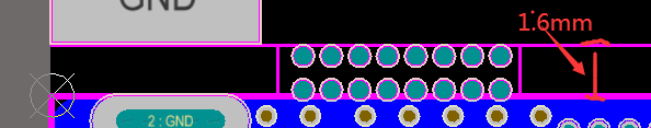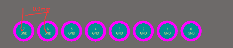 1.2 过孔之间间距(中心间距)0.9mm,共8个