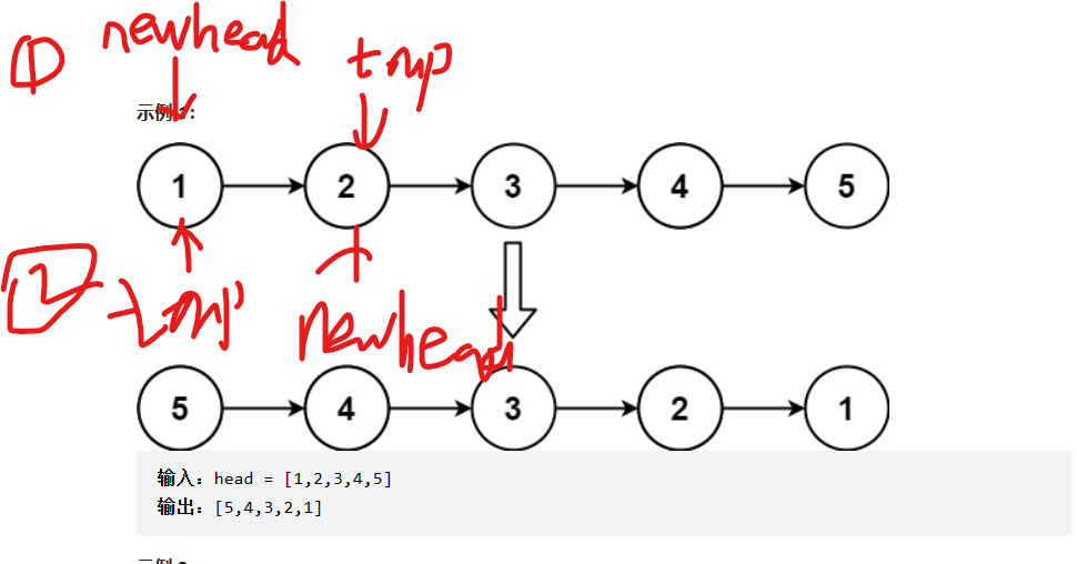 如果tmp = head->next和tmp = head区别在于前者保存了下一个结点,而后者是暂存当前结点,所以后者不能上来就head->next = newhead,会丢失后面下一个结点。