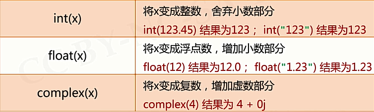 三种类型存在一种逐渐“扩展”或“变宽”的关系:整数->浮点数->复数