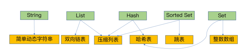 由上图可知,string的底层数据实现只有一种,而其他的数据结构至少为两种底层的实现结构