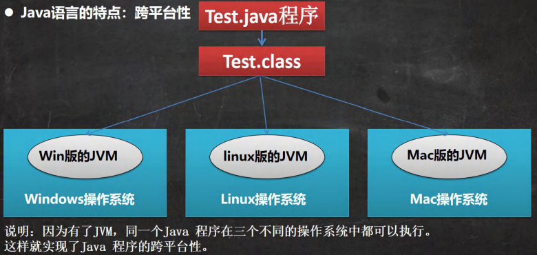 java虚拟机机制屏蔽了底层运行平台的差别,实现了"一次编译,到处运行"的机制。