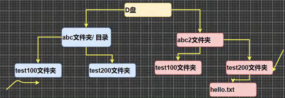 1、dir 查看当前目录是什么内容 dir d:\abc2\test200